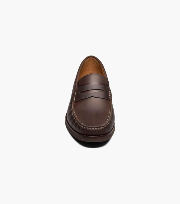 The Florsheim Berkley Flex Penny Loafer features a soft genuine handsewn leather upper with a stylish beef roll and stacked heel. Whether you dress them up with a sport coat or dress them down with a pair of jeans, the Berkley Flex elevates anything you wear.