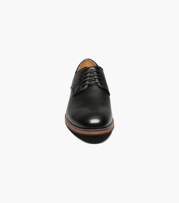 This plain toe oxford features a modern profile with a clean upper and stacked sole. The clean good looks of the Florsheim Blaze Plain Toe Oxford are complemented by lightweight construction, flexible midsole, and fully cushioned footbed for great all-day comfort.