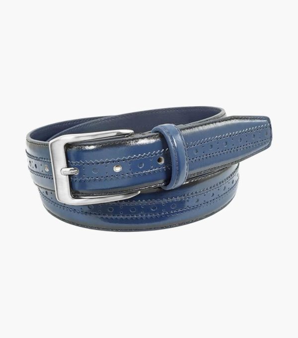 Boselli Center Brogue Belt Navy | Men Florsheim Belts & Suspenders
