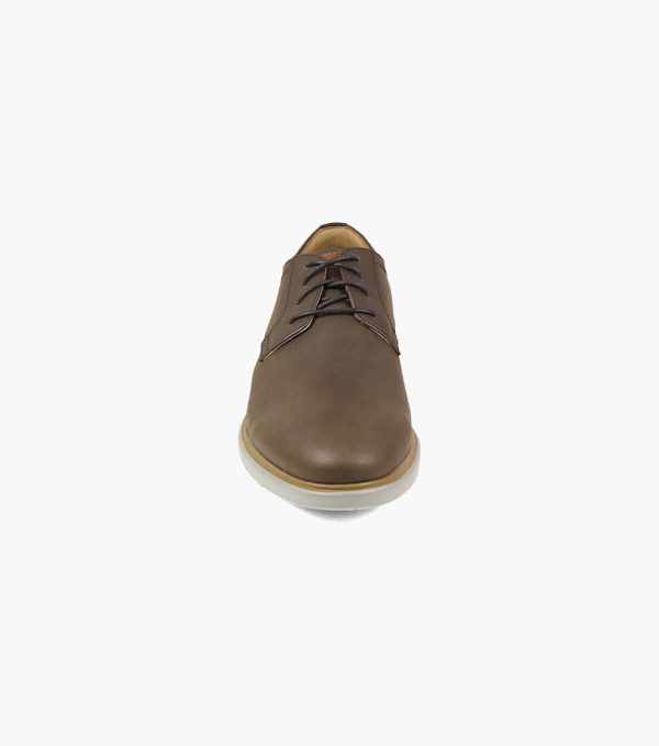 On trend and in comfort. That is the best way to describe the Florsheim Fuel Plain Toe Oxford experience. A plain toe oxford with a contrasting colored wedge sole, it offers all-day comfort thanks to its lightweight construction. And it features a fully cushioned, removable footbed, and a dual-density EVA midsole with Flexsole technology. Let the Fuel add a little fire to your look.