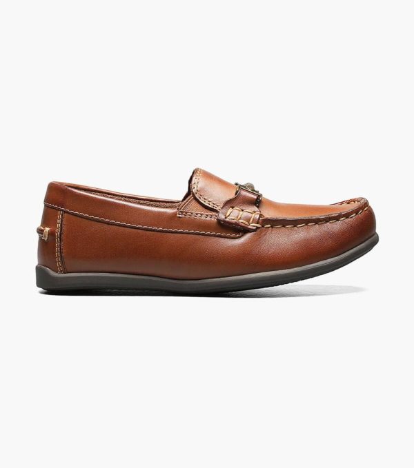Jasper Jr. Boys Moc Toe Bit Loafer Saddle Tan | Kids Florsheim Uniform Shoes