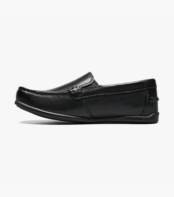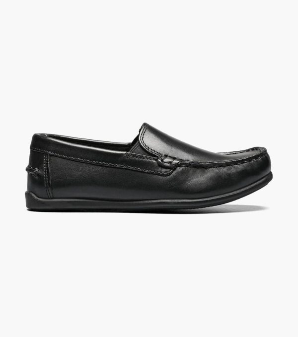 Have him looking and feeling cool in the Florsheim Jasper Moc Toe Venetian Loafer, Jr. With its classic unadorned vamp and stitched toe, this Venetian is full of style and with its fully cushioned footbed and long-lasting rubber sole it has an equal amount of comfort and durability too.