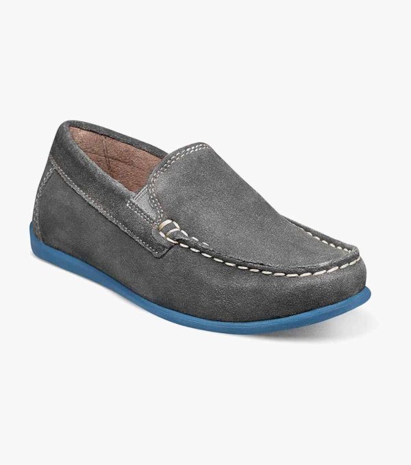Jasper Jr. Boys Moc Toe Venetian Loafer Gray Suede | Kids Florsheim Casual Shoes