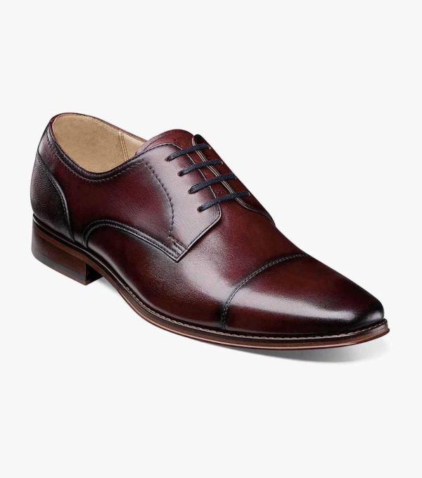 Luxuriously crafted with a mix of smooth and pebble grain leather, the Florsheim Palermo Cap Toe Oxford combines classic styling with contemporary touches like a sleek silhouette and stacked heel. Versatile enough to wear with a suit or jeans, if you only have one pair of shoes, make it the Palermo.