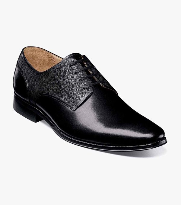 The clean design of the Florsheim Palermo Plain Toe Oxford is highlighted by its unique mix of smooth and pebble grain leather on the upper. The classic style has also been updated with a sleek silhouette, a stacked heel, and the comfort of a fully cushioned footbed.