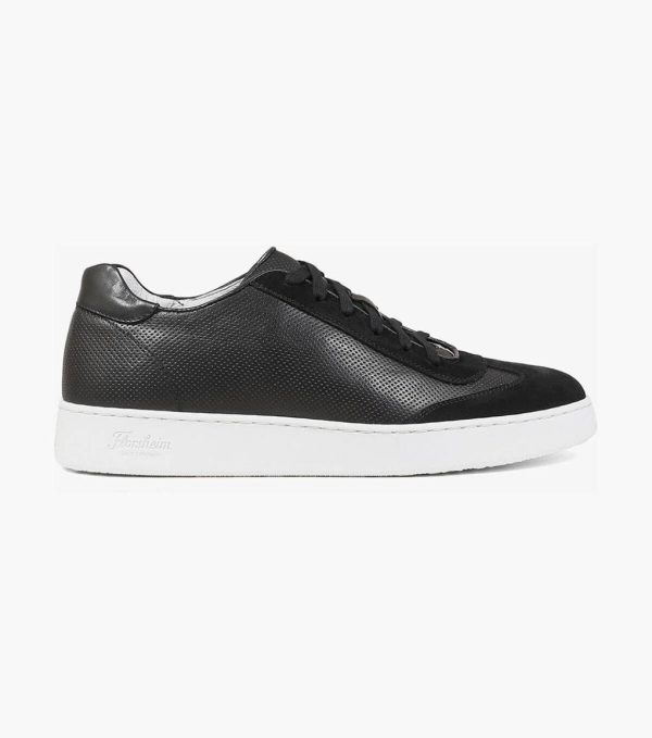 Micro-perforations and suede detailing give the Florsheim Random Plain Toe Lace Up Sneaker a modern look that is further enhanced by its athletic inspired white sole. Made of luxurious calfskin leather, we call it the Random, but dressed up or down, this shoe is consistently cool.