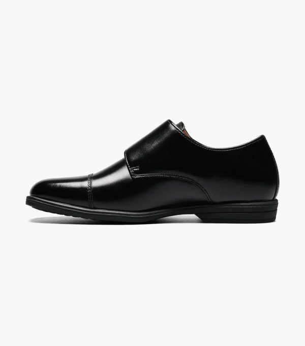 Classic yet contemporary, the Florsheim Reveal Cap Toe Monk Strap Oxford, Jr. gives him the durable dress shoe you demand and the style he wants. Plus, those cool gunmetal buckles not only look good, they also hide a Velcro closure for easy-on, easy-off, adjustable fit.