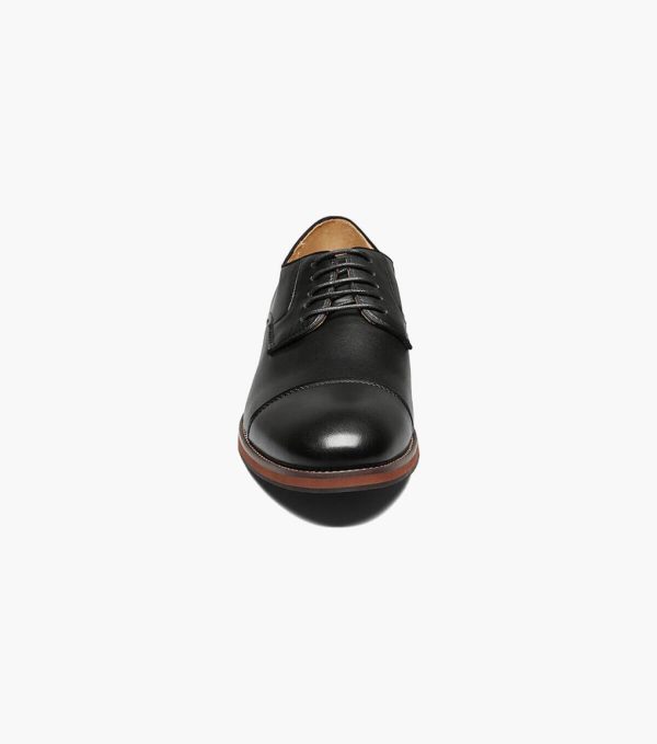 The Florsheim Blaze Cap Toe Oxford features a modern design with a slightly sleeker profile and the comfort of a fully cushioned footbed, EVA midsole, and a shock absorbing, dual density rubber sole. Dressed up or down, this is the go anywhere shoe you’ll want to wear all the time.