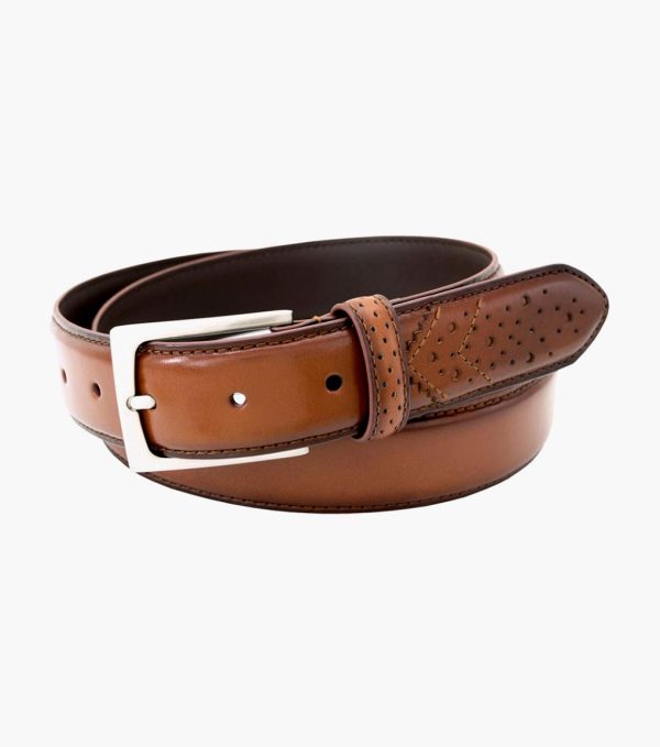 Castellano Wingtip Belt Cognac | Men Florsheim Belts & Suspenders
