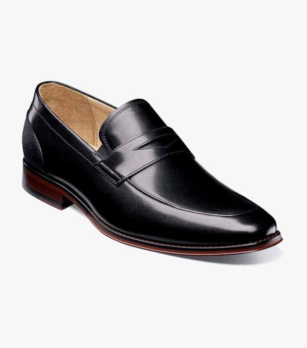 The Florsheim Palermo Moc Toe Penny Loafer features a hand burnished upper with a pebble grain heel, elegant stitching details, and a sleek profile. With its leather sole, leather linings, and fully cushioned footbed, the Palermo is one penny that’s rich in details.